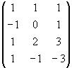| F(0, 0, 1, 0) = (1, 2, 3) | F(0, 0, 0, 1) = (1, -1, -3) |